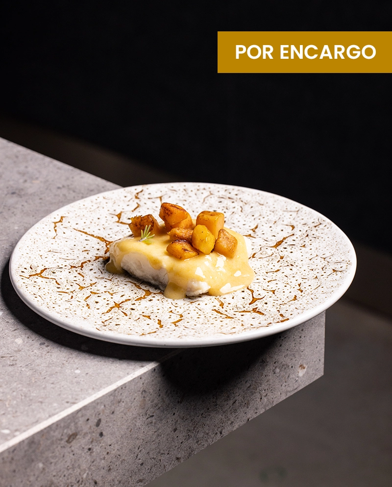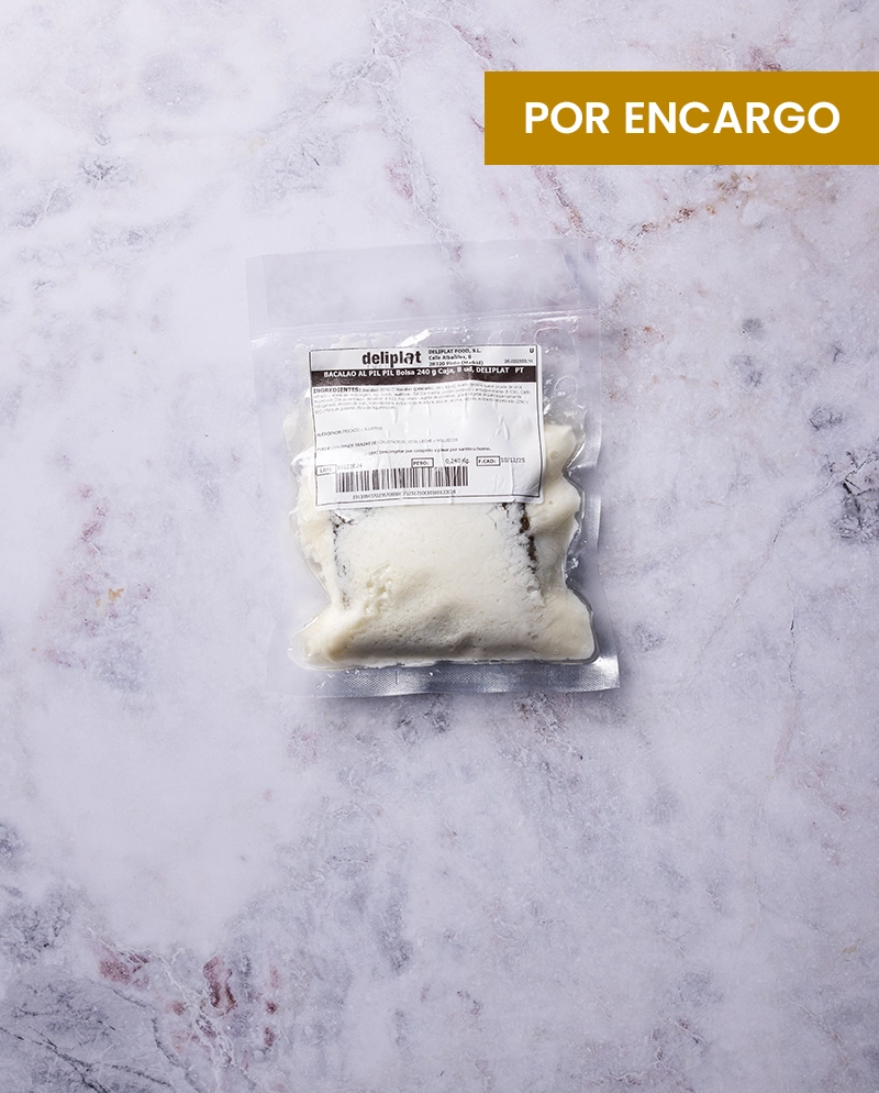 Lomos seleccionados de bacalao (Gadus morhua) cocinados a baja temperatura, conservando toda su jugosidad y textura perfecta. Su pil pil se elabora de forma tradicional, emulsionando el jugo natural del bacalao con aceite de oliva virgen extra, logrando una salsa sedosa y llena de sabor. Un plato icónico de la cocina vasca listo para disfrutar en cualquier momento.