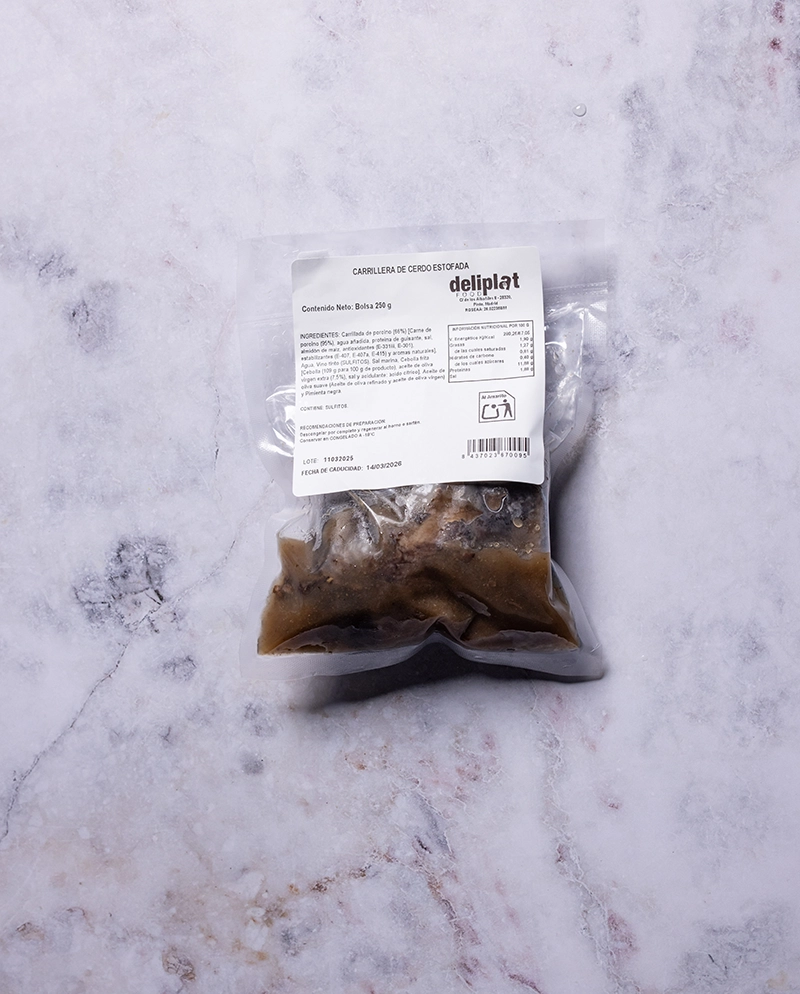Carrilleras de cerdo guisadas lentamente siguiendo la receta tradicional, con cebolla pochada y un buen vino tinto, que potencia su sabor y aporta profundidad a la salsa. El resultado es una carne tierna y jugosa, que se deshace en el paladar, envuelta en una salsa intensa y llena de matices. Un guiso reconfortante y lleno de carácter.
