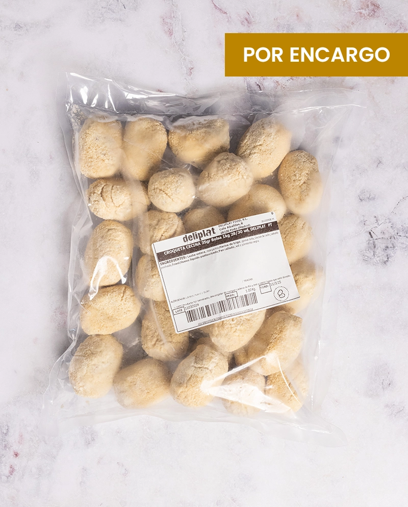 Croqueta elaborada con cecina de León, de marcado aroma ahumado y un sabor intenso a chacina curada. Su bechamel cremosa hecha con leche fresca, de tono blanquecino, equilibrando perfectamente la potencia de la cecina. El empanado fino y crujiente aporta el contraste ideal, convirtiéndola en una croqueta con personalidad propia y gran presencia en boca.