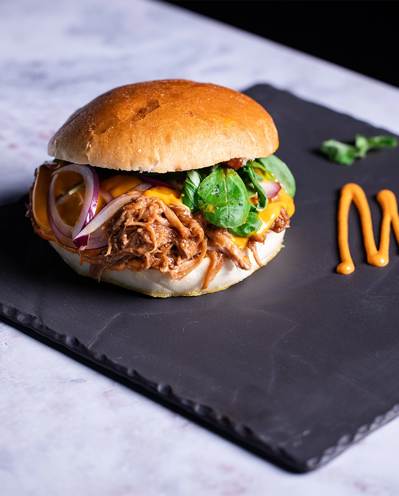 Seleccionamos los cortes más jugosos y tiernos del cerdo y los cocinamos a baja temperatura hasta lograr una textura melosa y suculenta. Deshilachamos la carne a mano mientras la mezclamos con una salsa BBQ con un toque de soja, que aporta profundidad y equilibrio al sabor. Su punto jugoso y tierno lo hace perfecto para usar en rellenos o para disfrutarlo tal cual, potenciando aún más su personalidad.