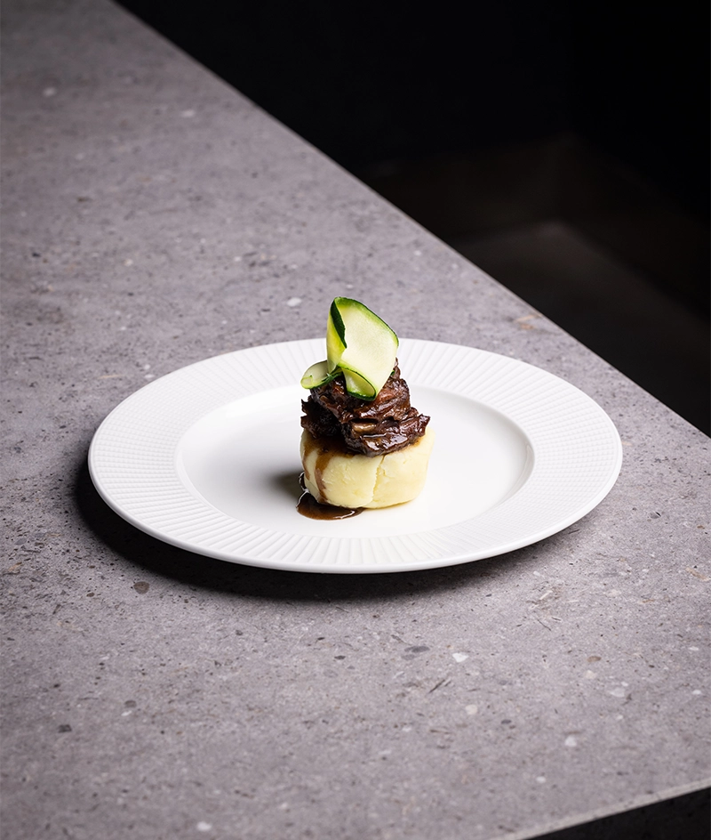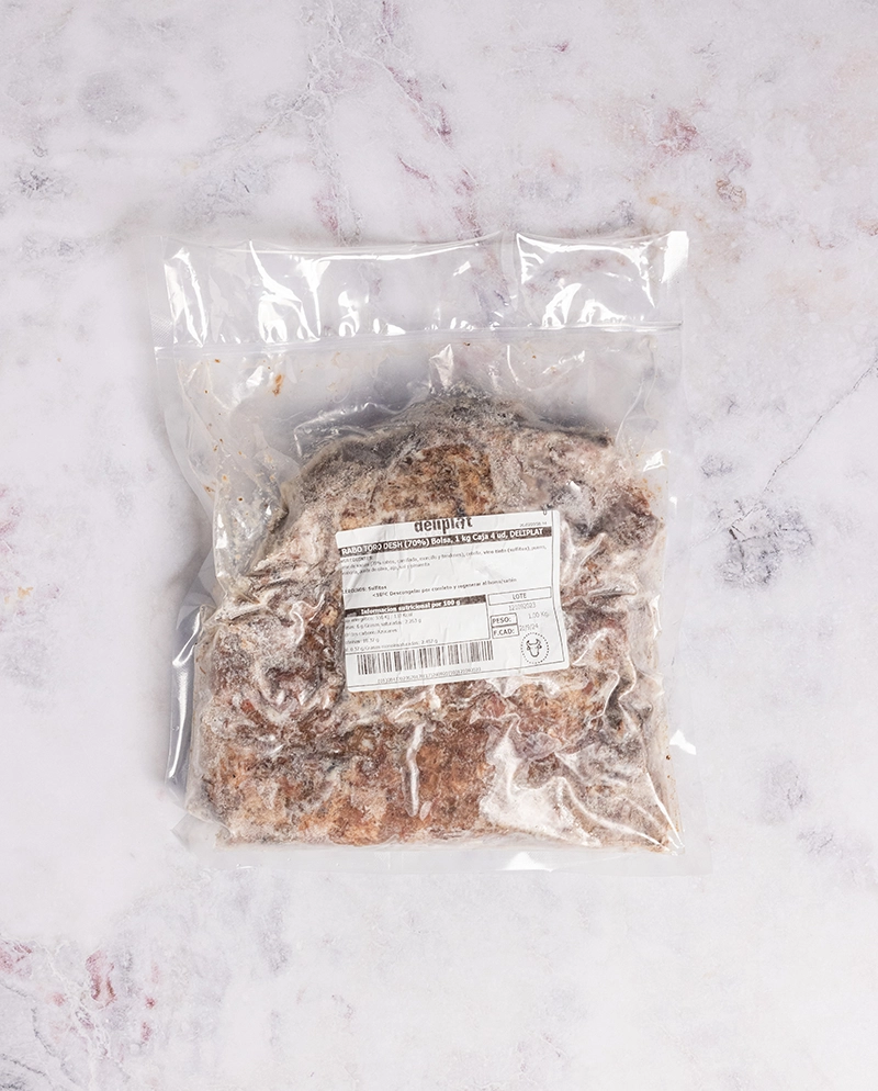 Elaboramos un guiso tradicional con una selección de los mejores cortes de vacuno: rabo, carrillada y morcillo, cocinados a fuego lento durante 8 horas para conseguir una carne tierna y llena de sabor. Deshuesamos en caliente y mezclamos con su propio jugo de cocción, logrando una textura melosa y equilibrada. Un producto versátil y sabroso, ideal para rellenos, timbales y múltiples elaboraciones.